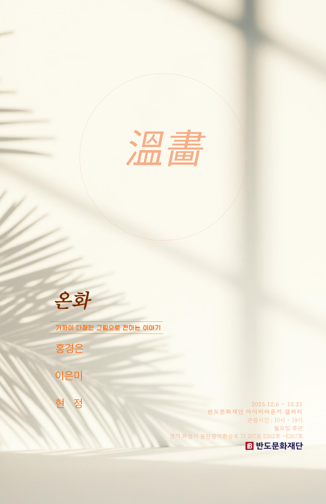반도문화재단 아이비 라운지 갤러리에서는 지역 미술 동아리 <그린>에서 활발히 활동중인 홍경은, 이은미, 현정 작가의 溫畵 여성 3인전 ‘다정히 보다’ 전시를 아래와 같이 개최합니다.