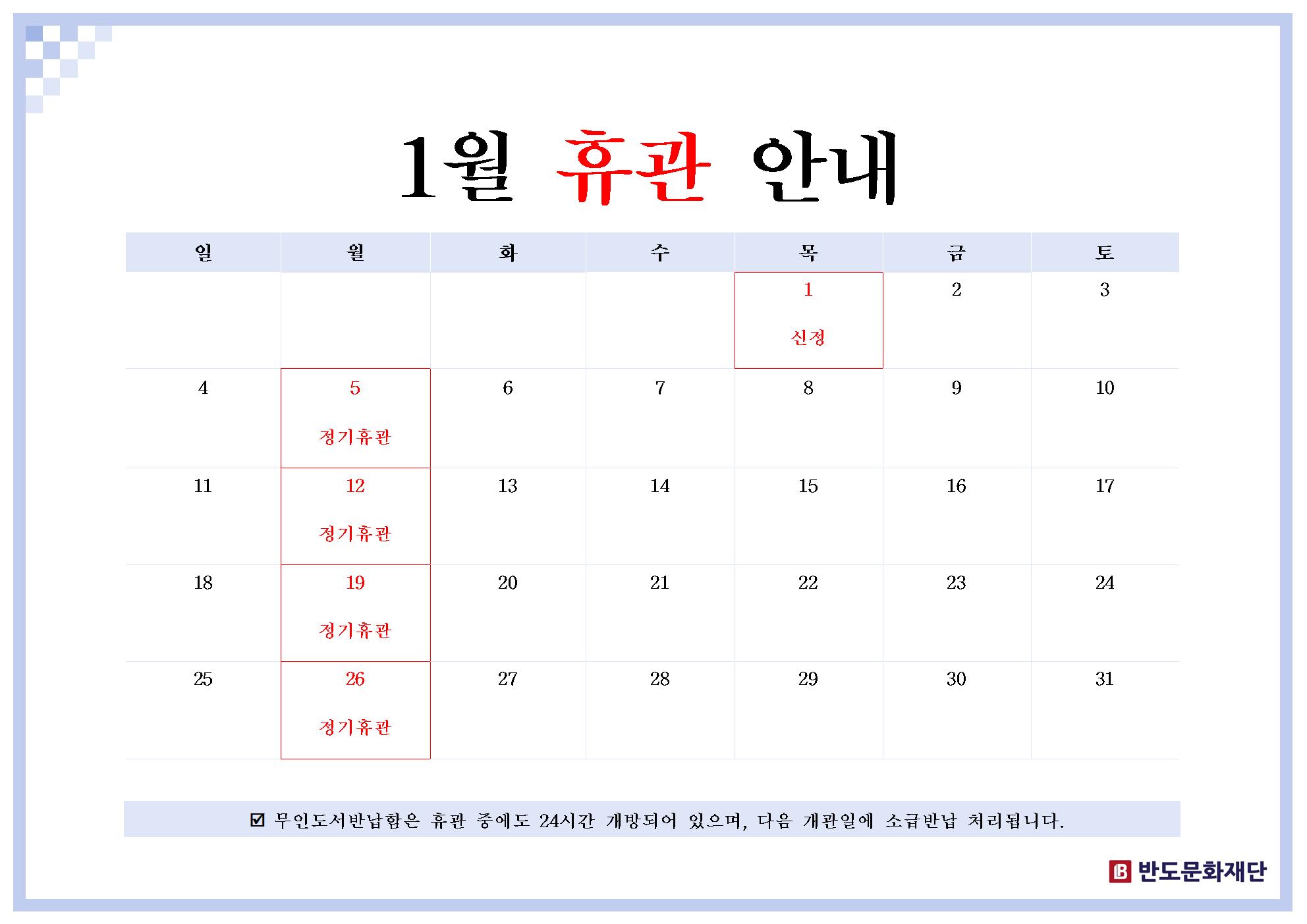 [공지] 1월 휴관 안내
