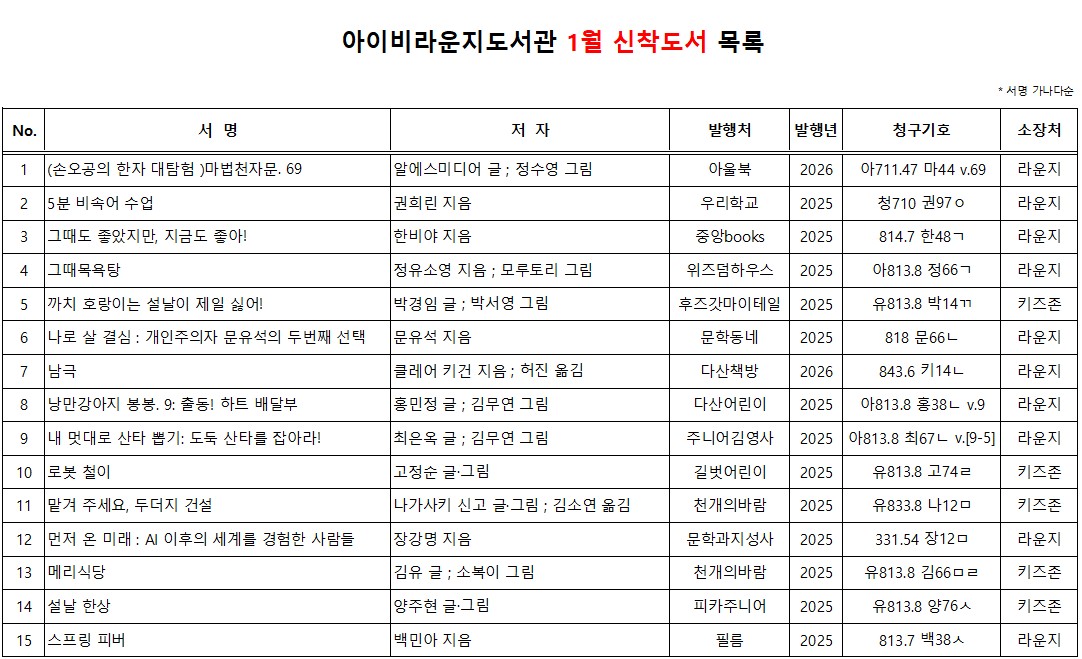 아이비라운지도서관 신착도서목록을