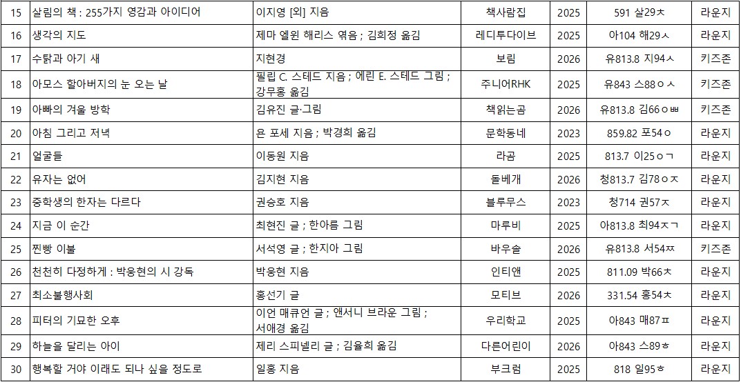 아이비라운지도서관 신착도서목록을