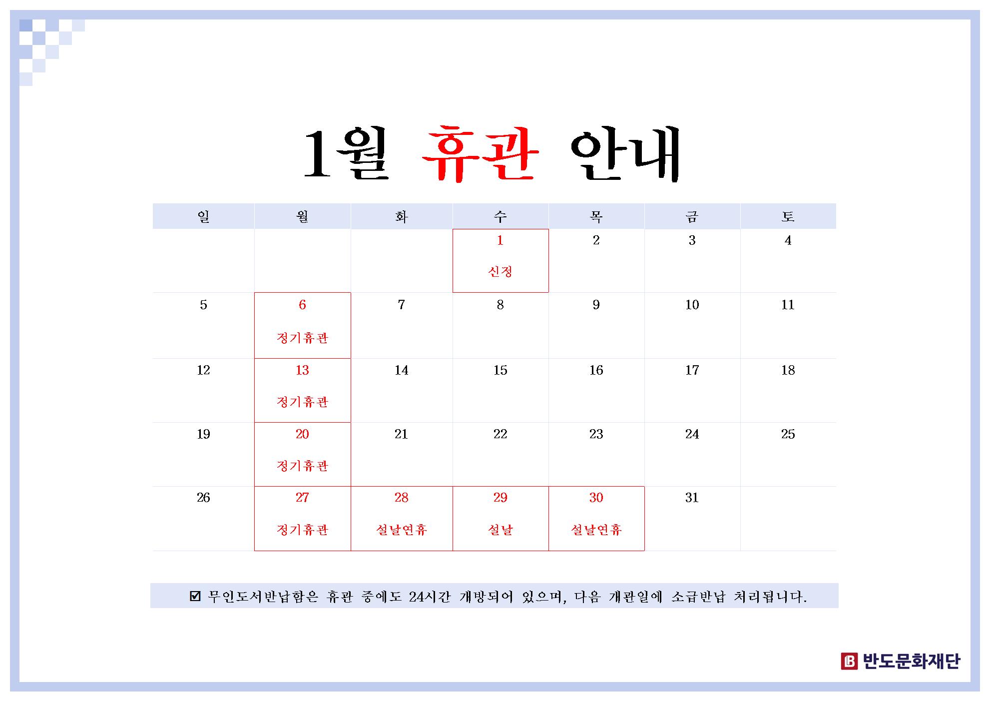 [공지] 1월 휴관 안내