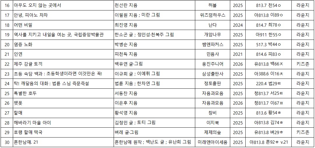 아이비라운지도서관 신착도서목록을