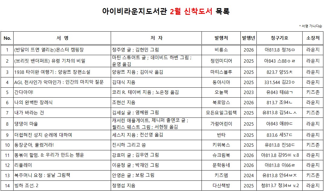 아이비라운지도서관 신착도서목록을